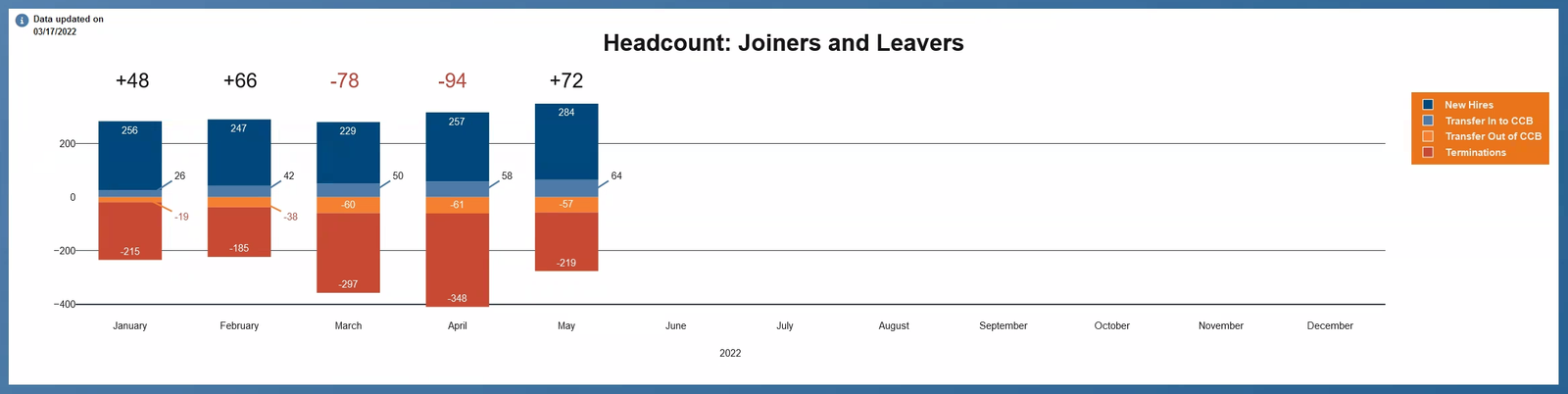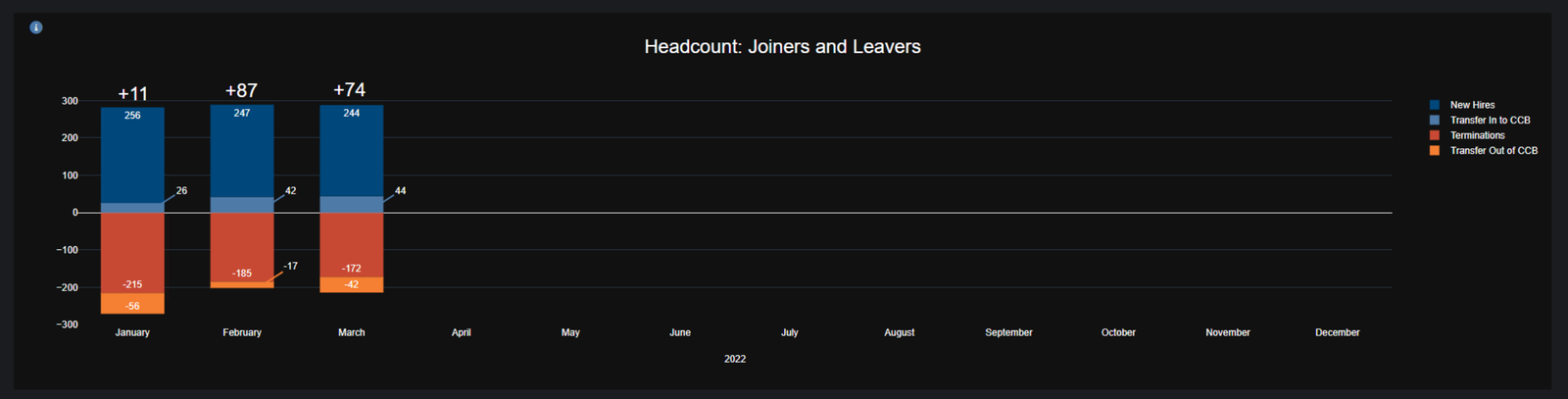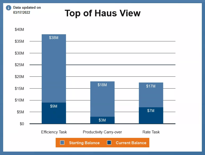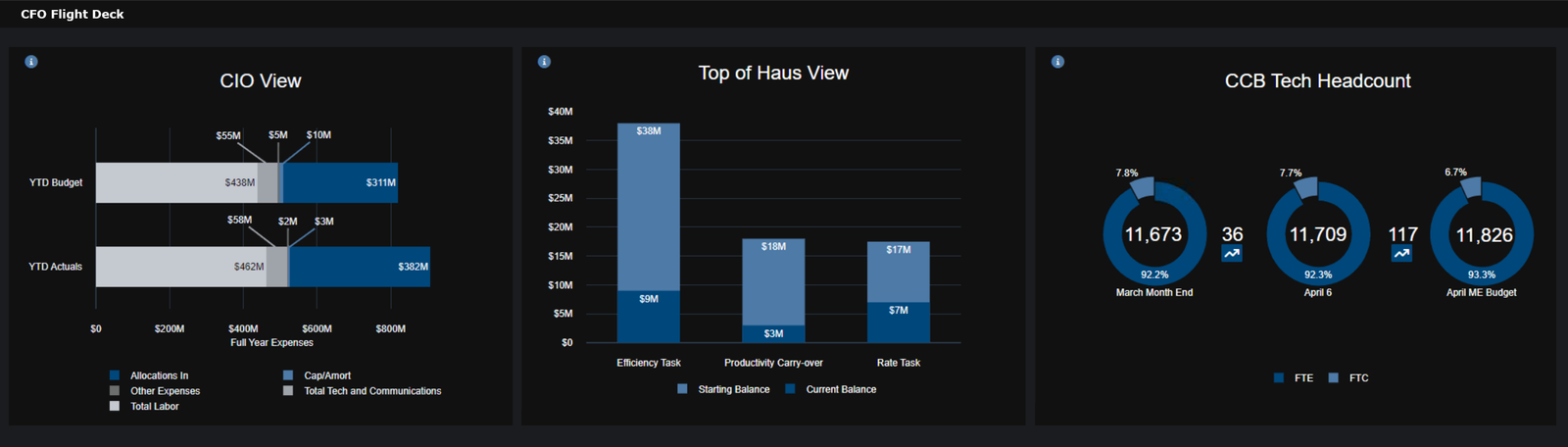 This is the full dashboard. The intention was that each dashboard would be customized for each CFO. That bespoke dashboard would then be permanently displayed in their office on a dedicated monitor. When new data was available the dashboard would automatically update. The date in the left corner of each chart would also update at that time. In the top right corner, if you click the moon it switches to dark mode and an animation toggles the moon for the sun. The document icon linked to the dashboard's documentation.